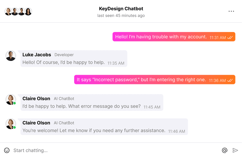 Offer live chat support to your customers. Our chatbot seamlessly transitions to human agents when needed.
